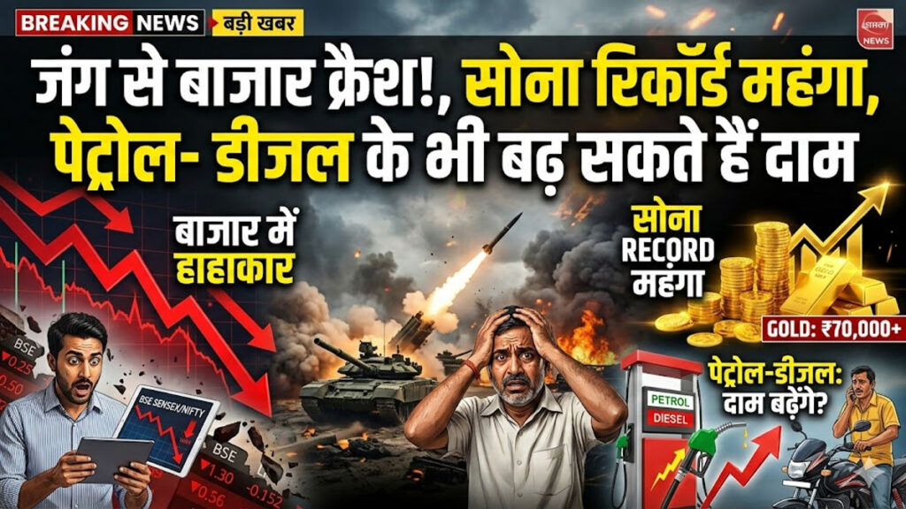 Stock Market Crash Today : अमेरिका-ईरान जंग से बाजार में हड़कंप : सेंसेक्स 1100 अंक टूटा, कच्चा तेल 10% उछला, पेट्रोल होगा महंगा